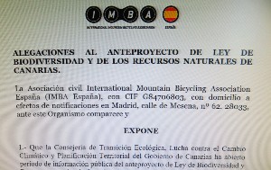 El pasado 7 de enero vencía el plazo para presentar alegaciones al anteproyecto de Ley de biodiversidad y de los recursos naturales de Canarias, en cuyo articulado se pretende prohibir la circulación de MTB por cualquier sendero o ruta en los espacios protegidos por esta Ley en las islas, aunque no existan daños.
